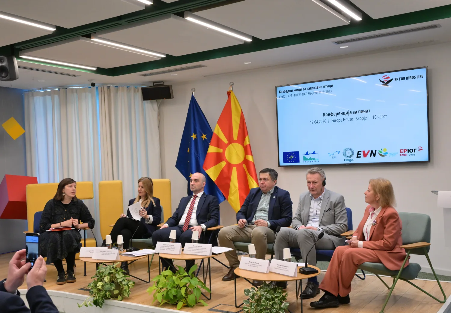 Со учество на високи претставници на Делегацијата на ЕУ во земјава и на релевантни институции, во „Јуроп Хаус“ во Скопје, се одржа конференција за печат во организација на ЕВН Македонија и Македонското еколошко друштво (МЕД) со што официјално се одбележа почетокот на меѓународниот проект „Безбедни жици за загрозени птици“ (101216021 – LIFE24-NAT-BG-EP for Birds LIFE).