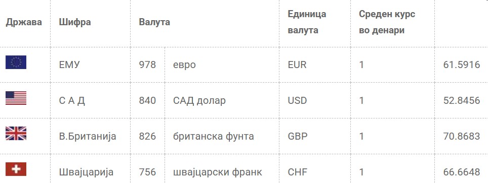 Курсна листа на Народната банка на Република Северна Македонија формирана на 20.10.2025 која се применува од 00:00 часот на 21.10.2025 година до почетокот на важење на новата Курсна листа: