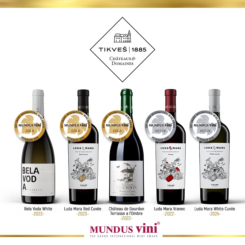 На годинешното пролетно издание на еден од најголемите и најпрестижни меѓународни вински натпревари – Mundus Vini Spring Tasting 2025, што се одржa во Германија, вината на „Tikveš Châteaux & Domaines“ поставија нов рекорд, со освоени девет златни и два сребрени медали.